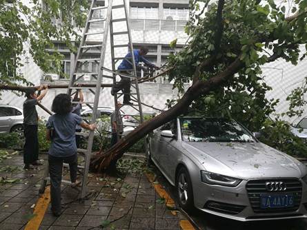 面临风力15级的超强台风“山竹”,虽做好了充足的准备,但后勤人仍不敢掉以轻心,台风来临期间,加强戒备,坚守一线。9月16日下午台风登陆后,在狂风暴雨中,后勤管理处齐心协力,众志成城,全力抢险!绿化管理中心、修缮服务中心和水电管理中心的职工们,各司其职,义无反顾地清理受损树木,疏通堵塞道路,关闭路灯电源和低洼楼宇的电梯电源,排查安全隐患;饮食服务中心于台风来临前做好了充足的物资准备,并加强设备的维护,台风期间我校饭堂全部正常供应;生活服务中心提前采购商品,连夜增加配送,确保两校区超市特别是食品类、饮水类商品的正常供应;大学城校区的广电物业积极配合学校部署安排,排查安全隐患,为确保学生安全,台风期间对教学区进行“清场”,护送学生返回宿舍,并全力开展后期抢险。