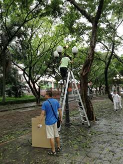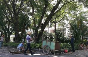 清理校园受损树木,清扫道路卫生