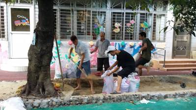 为了迎击超强台风,确保师生的生命财产安全和学校的平安稳定,学校领导高度重视,潘华峰副校长立即组织后勤管理处启动应急预案,周密部署,未雨绸缪。后勤管理处严阵以待,9月14日,后勤管理处与保卫处一同对三元里校区重点部位进行了巡视排查、检修清理,并预备了130个沙袋。同时,与广电物业一道,对大学城校区进行巡视检查,并做了相关的预备措施,做好防灾避险工作。9月15日,潘华峰副校长带队巡查校园,检查防御工作,后勤管理处制定应急预案,发布《后勤管理处关于做好防御风王“山竹”的通知》。9月15日、16日,在风王即将来临之际,潘华峰副校长、后勤管理处领导和相关人员坚守一线,全力做好校园防护措施。