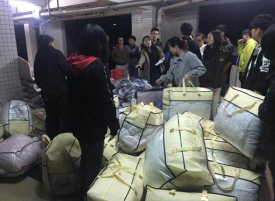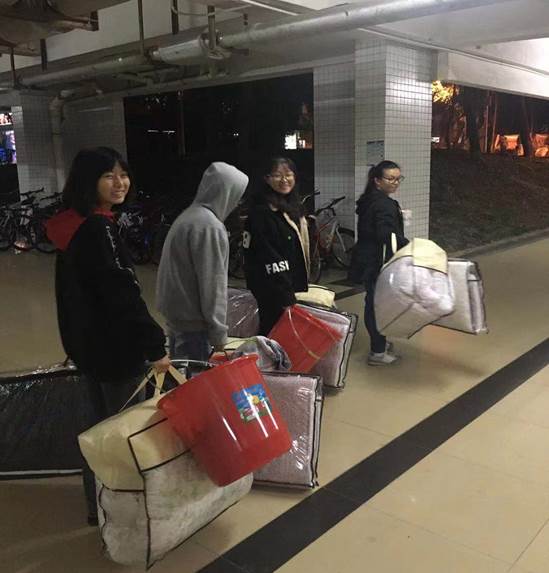 现场洋溢着温馨感人的气氛,男生们默默地帮助女生们搬运被子至宿舍楼,女生们纷纷表示感谢之意。大家有说有笑,不少学生表达,希望学校能够多举行这样的活动,让大家更深刻地领会节俭的意义。