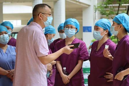 疫情发生一年多来,吴成林主任组织带领门诊团队开展最新新冠肺炎诊疗防控方案、可疑病例应急处置演练、个人防护、消毒消杀等学习培训等不断地提高门诊部医护团队的战斗力。他说的最多的是:“我们是校园防控最前线的战士,必须时刻保持嗅觉提高警惕,做好战斗准备。”关键时刻,他带来大学城门诊部团队三天时间就完成了健康观察区设计、改造、工作流程等所有准备工作。2020年5月11日至6月24日,他带领工作人员坚守45天,完成共三批中高风险地区返校的308名学生健康观察工作,保证我校顺利复课复学。