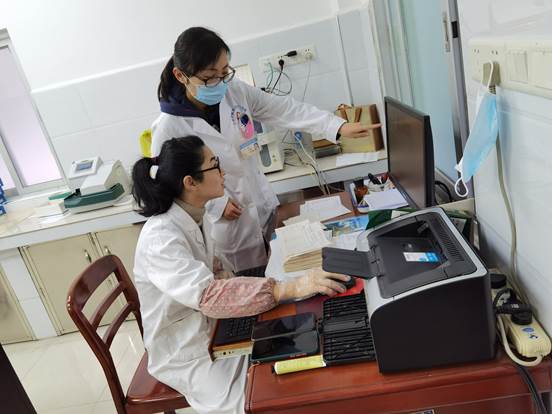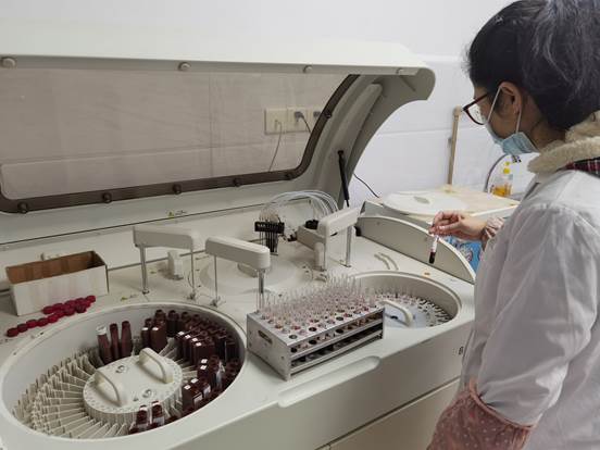 (图为检验科工作人员正在处理数据)