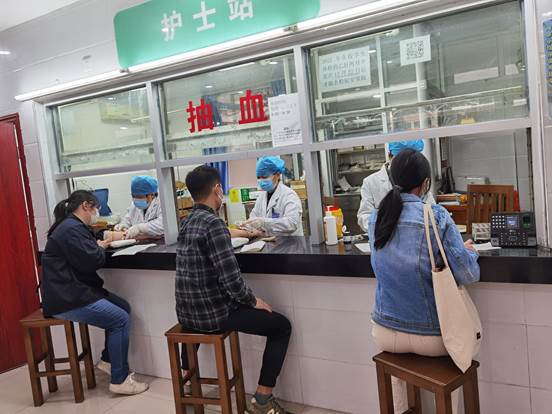 (图为护士站工作人员为学生采血)