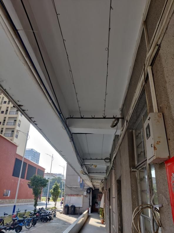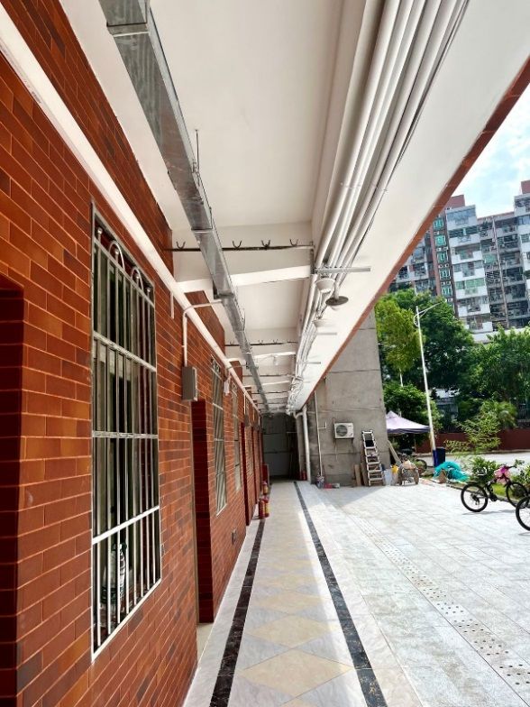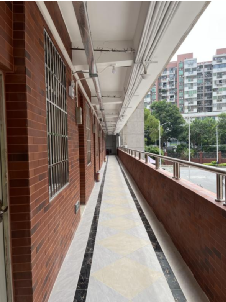 改造前的学生宿舍4栋走廊侧墙保留着七十年代的水磨石“复古风”,本次改造侧墙贴红砖、地面抛光砖拼花,既保留了学生宿舍4栋的历史感,又与新安置南北楼相呼应。同时,一改原有的蜘蛛网,将管线一一入槽,整体美观度大大提升。