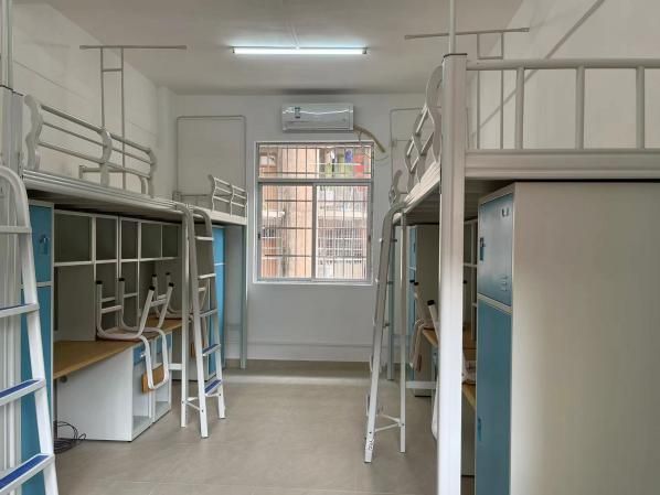 三元里校区学生宿舍4栋分两期改造,本次为一期改造工程,对1-2层宿舍、走廊、卫生间等整体翻新,新增19间宿舍,94个床位,有效缓解三元里校区床位紧张问题。