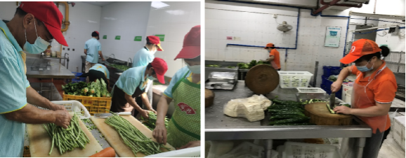 【巳时】9:00-11:00 暖融融的阳光透过玻璃窗洒下, 为校园披上了一件金色的外衣。 食堂的员工紧锣密鼓地为同学们准备着午餐。 洗菜、切配、调味、烹饪。 每个步骤都认真对待, 做到洗净煮透, 保障师生舌尖上的安全。