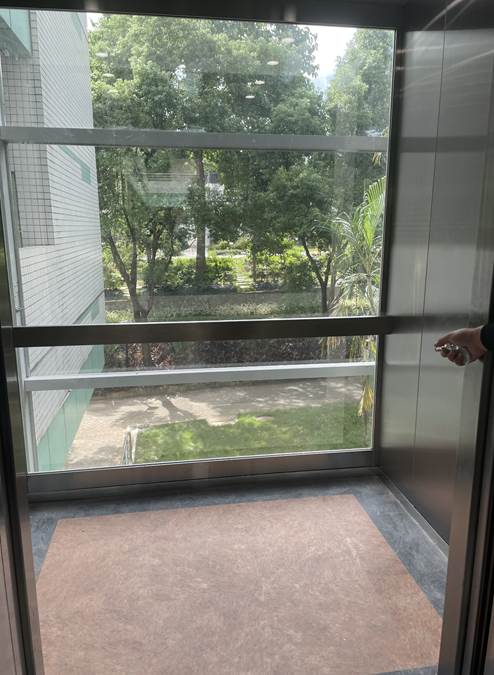 综合楼加建电梯终于投入使用,