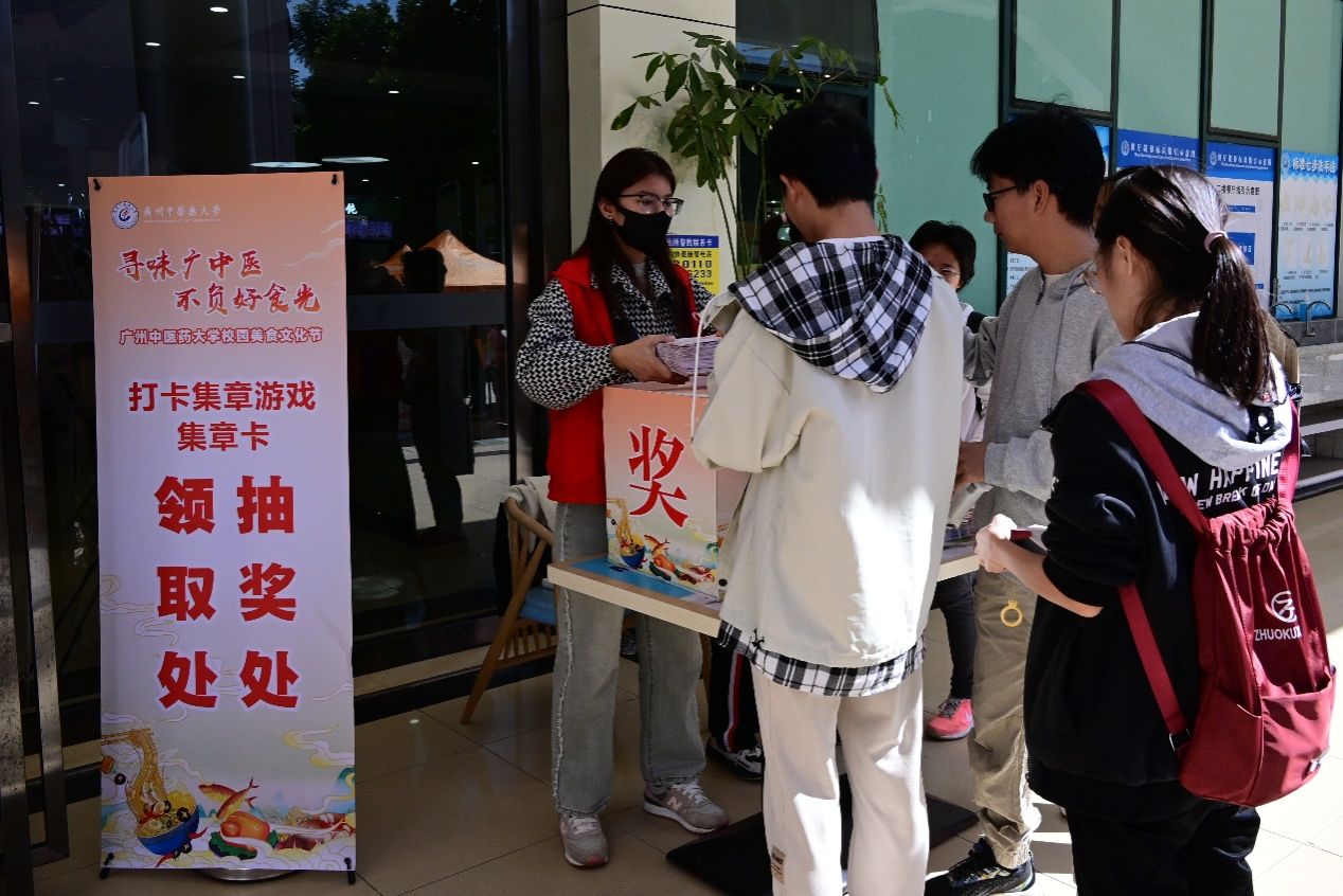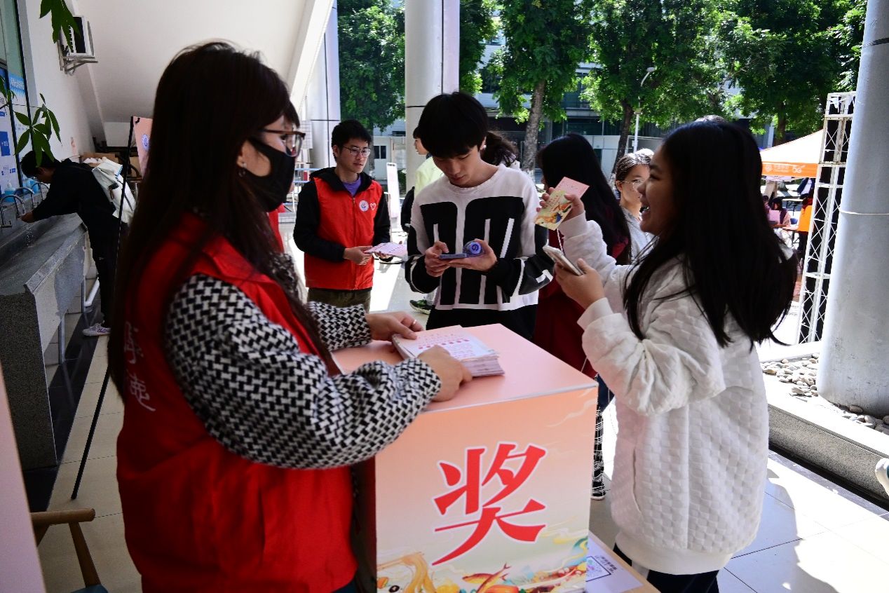 除了诱人的食物,现场还设计了打卡集章抽奖活动。只要参与美食文化节的活动项目,就可参加抽奖,获得美食兑换券,中奖率100%,永不落空。本次共发放一千二百余张美食兑换券,包括正餐、粥粉面、甜品、小吃、汤饮等类别。同学们热情高涨,踊跃参与,现场气氛被一次次推向高潮。