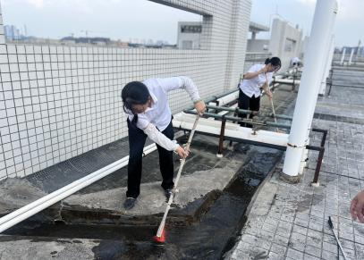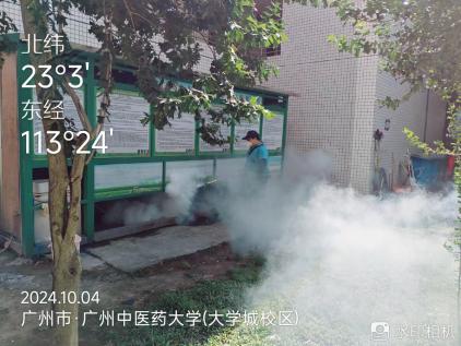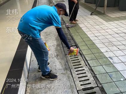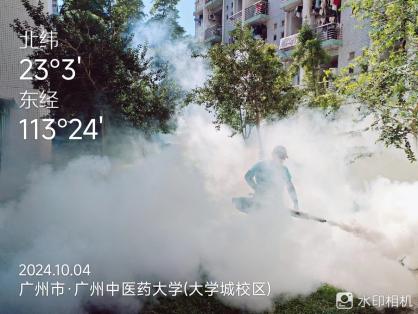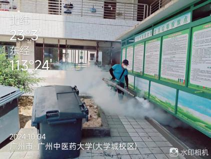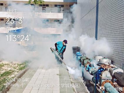 从5月至10月,校园内每月组织开展4次消杀活动,国庆期间大学城校区已连续3天开展集中消杀。工作人员深入各栋楼宇前后庭,全面细致检查校园各个角落,并对绿化树木、下水管道、天面楼顶等易孳生蚊虫的重点公共区域进行药物喷洒,同时清理垃圾杂物、卫生死角,从源头上有效遏制蚊虫的繁殖。