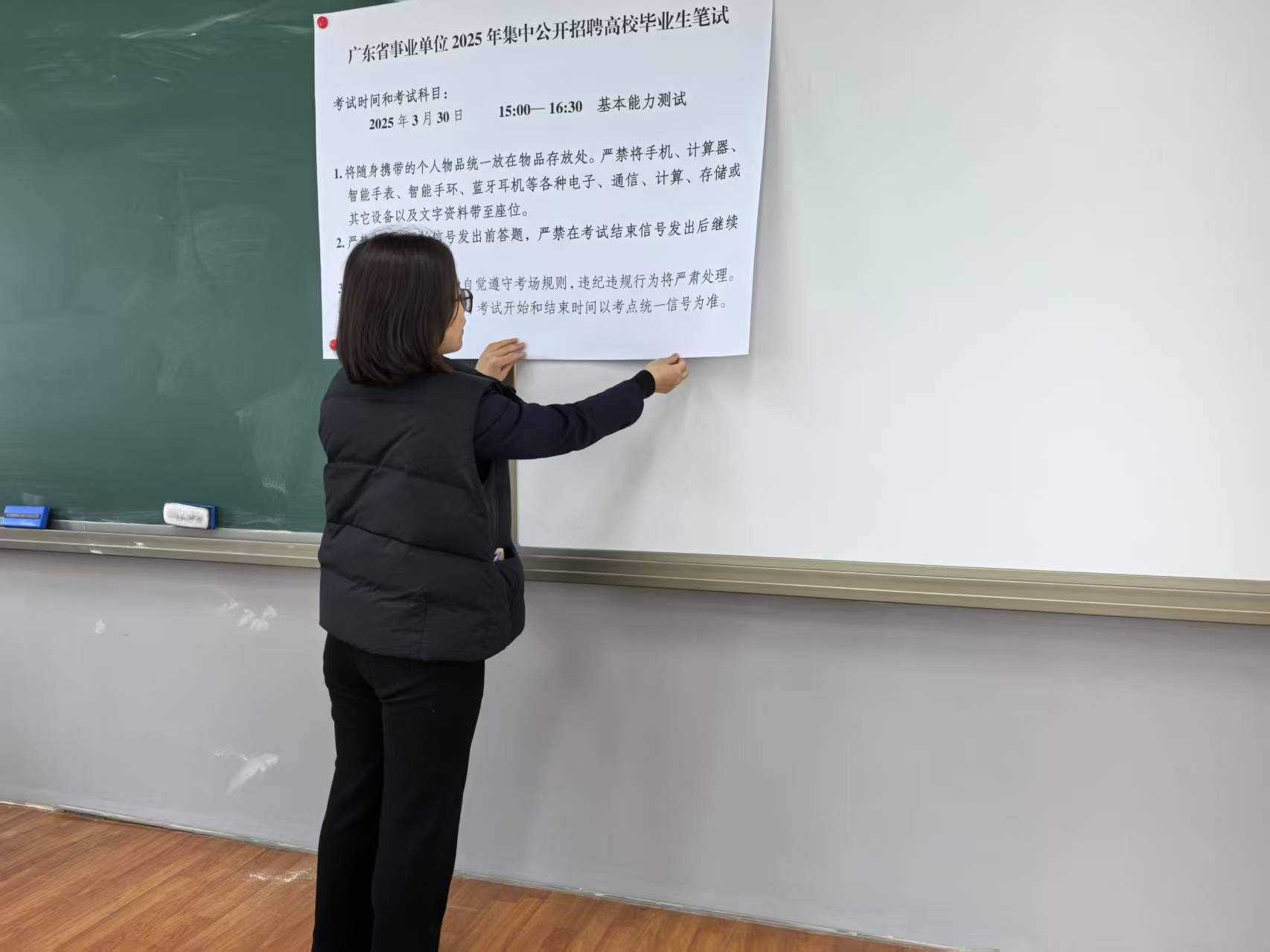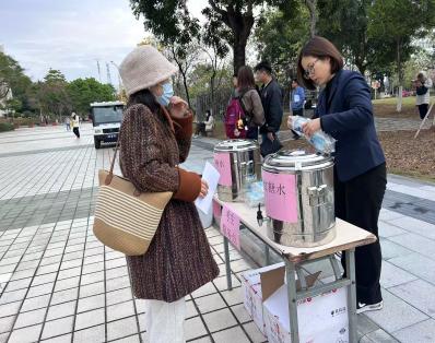 提前布置考场,做好摆放桌椅、张贴考号、姜茶派送等贴心服务。根据考务要求,在考场周边设置温馨提示牌,提醒考生注意事项,在考场入口处为考生和考务人员提供信息咨询和引导服务。